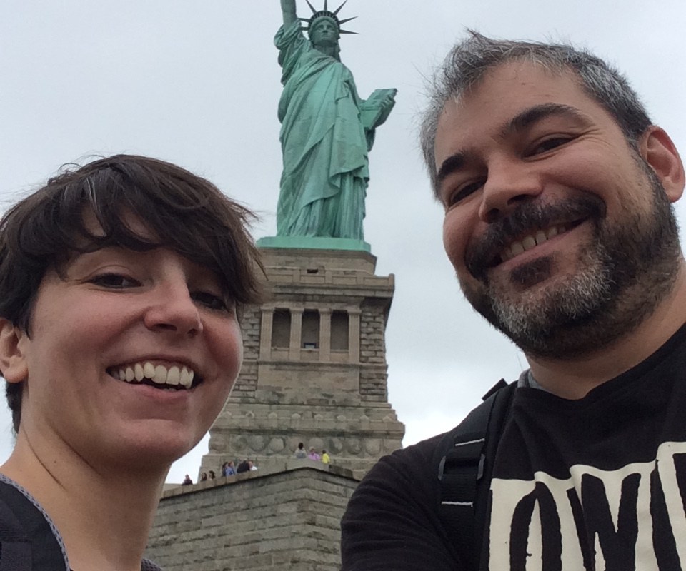 Brooklyn muy muy muy molón, barrio latino con cafeterías hipster y lavanderías cada diez pasos. Caótico servicio de recogida de equipajes en el aeropuerto, y no llegan las mochilas hasta un día después con lo que hay que agenciarse de urgencia un pack de supervivencia-ropa interior-toalla. Metro cercano con buena combinación a Manhattan (que es lo que yo pensaba, de las pelis, que era Nueva York). Ojo no te montes en el primer tren que pase que si es express te saltas la parada. La habitación del airbnb huele a pies, hay cristales rotos debajo de la cama y tenemos un baño casi para nosotros solos. El tipo de la casa, nos esperábamos un interesante madurito green peace y resulta un rastasurfero venido a menos, nos está alquilando su propia habitación mientras los primeros días duerme (supuestamente) en casa de su novia y los últimos dos en el sofá de arriba (supuestamente ex-novia pues). Los otros inquilinos son a) un indio americano (no confundir con americano indio, es decir, que este es de la india india), maestro dominador de bachata, merengue y, en menor medida, salsa, que se está mudando a Canadá, tierra prometida con su seguridad social y su educación gratis, y con el que compartimos conversaciones, chalupas, vino de Transilvania y whisky de trébol; b) una lituana holandesa sobre-guai, sobre-trendy, y sobre-todo ignorable; y c) un tipo que aparece o desaparece sin orden ni concierto, por lo que no se sabe no se contesta. Los edificios muy altos, el tiempo muy bueno, Chinatown con sus chinos, Little Italy en fiestas (las de San Genaro), la estatua de la libertad en su sitio, mercadote (no confundir con mercadillo) en Hell’s Kitchen, gran paseo hasta el Soho (no confundir con Sojo), frugales desayunos veganos, algo de street art y, los espontáneos, ora en el metro haciendo malabares con gorras y vampiradas break dance dentro de los vagones, ora dando conciertos con cubos de plástico en las estaciones transbordo. Muchas luces en Broadway y mucha suerte con la función, que estuvo guay (gracias Noemi por la recomendación). Buena música pese al espíritu saca-cuartos del garito de jazz. Está prohibido fumar en Central Park y sí, sacrilegio, nos fuimos sin probar un hot dog del típico puesto callejero. Viendo cuánto nos soplaron por un helado y un batido en una camioneta donde el Rockefeller center, como que ya no hubo más huevos. ¡Viva Brooklyn, gringos!