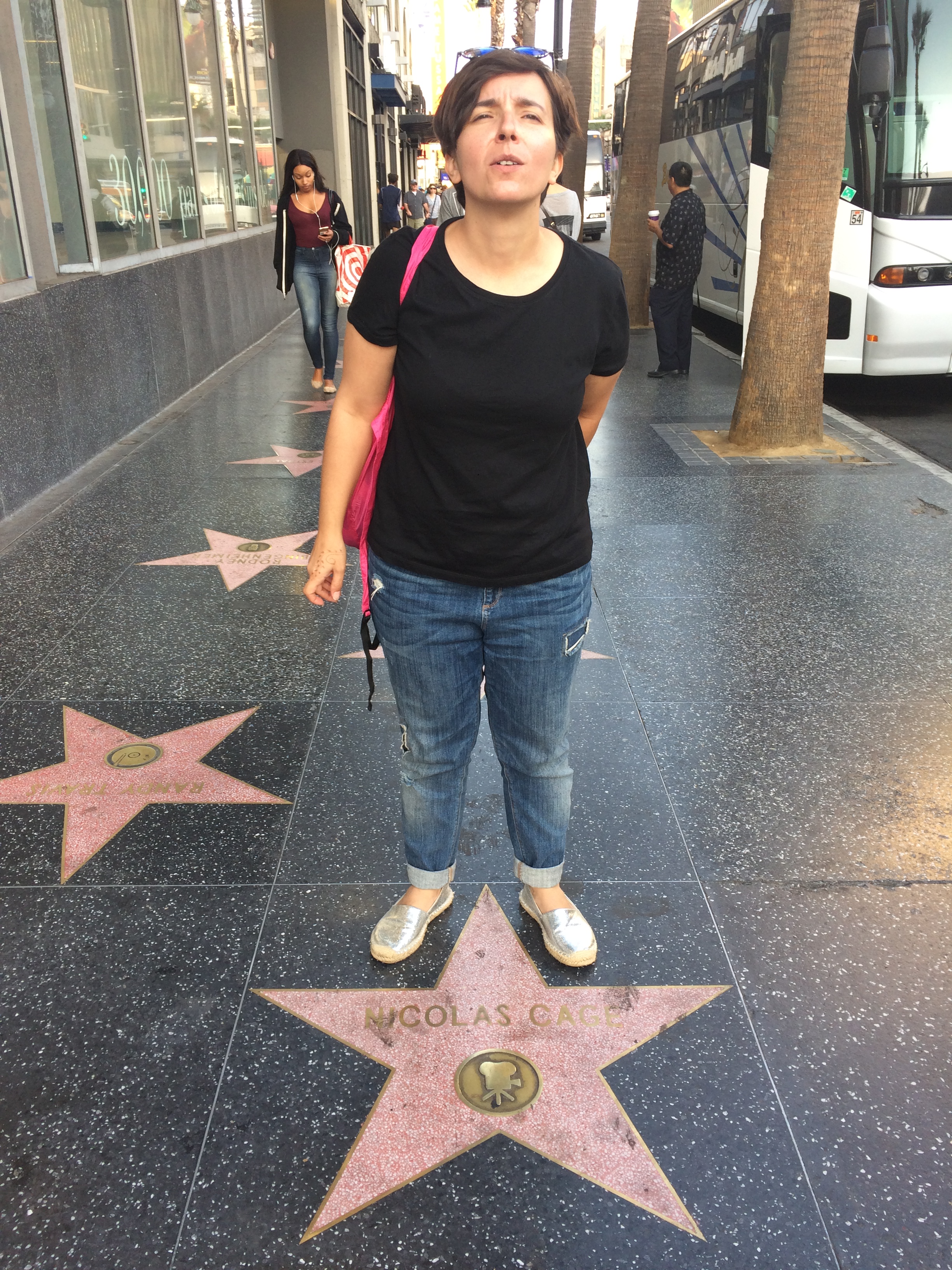 Y menos mal que decidimos saltarnos Los Ángeles, porque parece muy muy grande. ¿En extensión? Enorme. ¿Buena pinta? Uff.. casi que no mucha, así que si hay que reducirse a lo mínimo, demos una vuelta por Hollywood al menos, Y eso hicimos, entramos a la ciudad conduciendo por Mulholland Drive, nos hicimos un selfie desde lejos con las famosas letras en las colinas al fondo, bajamos a dar un paseo por el walk of fame donde cada dos baldosas hay una estrella con el nombre de algún celebrity (y vale todo, desde cine a música pasando por television, y donde entran todos, incluido Nicholas Cage y Luis Cobos). Es sólo en el patio del teatro chino donde están los cementos con las huellas de las manos y los pies, algunos antiguos, algunos más modernos, incluyendo las suelas de Tarantino donde se lee „paz y prosperidad para la humanidad“ ¿o quizá era „fuck you“?, no me acuerdo muy bien, en fin, una de esas dos cosas.